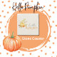 Cosy decor for the cooler Autumn months. Orange and black script typography. Image of the fall harvest: pumpkin on a vine. Ideal for Thanksgiving too!