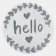 watercolor grey hello sticker surrounded by laurel wreath