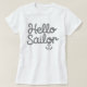 This white t-shirt features the text "Hello Sailor" in a playful, rope-like black font. Below the text is a simple black anchor graphic. The design is nautical-themed and suggests a fun, casual style. It could be worn for a bachelorette party or any event with a sailing theme.