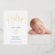 A modern, simple and elegant script hello typography baby boy birth announcement with 1 photo grid collage, and an elegant typography calligraphy, with hello baby name. Introducing baby! The dusty blue background colour is fully editable with real gold foil,