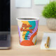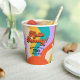 A party cup that will have you stepping back in time to the groovy era of the 1970s as you celebrate the guest of honour's 70th birthday in fun retro style. Get ready to relive the peace, love, and freedom of the hippie movement with a groovy party that's sure to transport everyone to a time of flower power and disco balls. This design has a bold colourful sunburst with wavy rays emitting their effervescent energy in the background. A groovy seventies font spells out "Hello Seventy!" in the style of that bygone era. Personalise the text template with the guest of honour's name and age. These cups are suitable for both hot and cold beverages. You can purchase them with or without lids.
