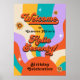 Welcome your party guests to step back in time to the groovy era of the 1970s as you celebrate the guest of honour's 70th birthday in true retro style. Get ready to relive the peace, love, and freedom of the hippie movement with a groovy party that's sure to transport everyone to a time of flower power and disco balls. Encourage your guests to dress up in their best hippie-inspired attire, from bell-bottoms and fringe vests to headbands and platform shoes. This party welcome sign design has a bold colourful sunburst with wavy rays emitting in the background. A groovy seventies font spells out your welcoming text in the style of that bygone era. Personalise the text template with the Guest of Honour's name. Note: This poster design can be downloaded and you can have it printed on your chosen type of poster board or sign material.