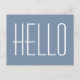 Hello Simple Minimalist Typography Greeting Blue Postcard