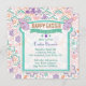Pretty spring floral Easter Brunch or other event invitation in pastel purple, aqua and pink over white. Delightful Easter theme with flowers and butterflies. Typography banner say Happy Easter, Hello Spring. Perfect for any Spring or Easter celebration. Customise front text and then matching card back with RSVP information.