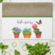 Decorate your kitchen for the season with this "hello spring" style kitchen towel. This cute towel features a burlap upper with a white border. On the white is an illustration of three flowers in pots and a butterfly. Buy for yourself or buy a set of towels for that special someone. Kitchen towels are thoughtful housewarming and other occasion gifts. *flower pots by pixabay