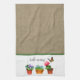 Hello Spring Khaki Colour Burlap and Flower Pots Tea Towel