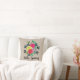 A custom throw pillow that features the text "Hello Spring" along with an image of colourful roses set against a Dhurrie Beige background.