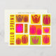 This vibrant postcard is the perfect way to say "hello" to spring! It features a beautiful design of pink and red tulips in a stamp-style on vibrant yellow, orange, and green backgrounds.