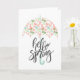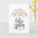 Colourful floral umbrella with "Hello Spring" text in modern script