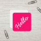 A square hello style profile card template with a simple clean design. A solid colour on the front with "Hello" written in a stylish font placed at 45 degrees. Name, profession/job title along with telephone, email and website address on the reverse side. The name also has an underline in a matching colour to that used on the front, this can also be shortened or lengthened. This template is also a good starting point for further customisation.