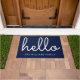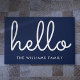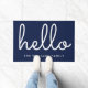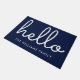 Hello Stylish Script Navy Blue Custom Family Name Doormat