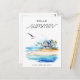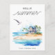 Connect with tour clients this summer with this eye-catching "hello summer" postcard featuring a beach house, ocean, and seagulls.