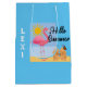 Hello Summer Pink Flamingo Design - Sky Blue Gift Bag - Medium