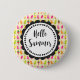 Button with an image of a summertime pattern of popsicles and ice cream in watercolors. Hello Summer written in a fun trendy font inside a round whimsical frame.