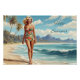 Hello Summer Retro Lady Walking on the Beach Poster