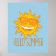 Vector cartoon sun character wearing sunglasses with Hello Summer text. Great for summertime. Keywords: beach, blazing, cartoon, cheerful, fire, flame, friendly, glasses, happy, heat, hot, humour, illustration, season, seasonal, shades, smile, star, summer, sun, sunglasses, vacation, vector, weather, icon, summertime
