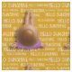 A bold large-print fabric showcases a top view of a female sunbather in a wide-brimmed hat, lounging on sandy textures with subtle text accents in the background. This fun beach fabric is ideal for the beach bun, big hat lovers, and summer fun.