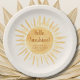 These Baby Shower Paper Plates are decorated with a watercolor sun and stylish typography on a cream background.