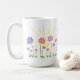 This pretty mug is covered with hand drawn, whimsical flowers and a Hello Sunshine greeting to help you start your day. 15 oz capacity. Original art by Carol Kristensen.