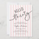 Celebrate turning 30 in style with this chic invitation featuring modern script typography that reads “Hello Thirty.” Set against a soft pink and white striped background, its clean and elegant design makes it a perfect choice for her special day.