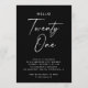 Hello Twenty One | Black Minimalist 21st Birthday Invitation