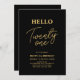 Hello Twenty one Gold & Black 21st Birthday Party Invitation