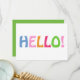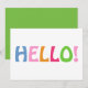 Say hello in bright, modern style. This minimalist flat note card features a cheerful multicolored “HELLO” design in blue, pink, and green on a crisp white background. The back is finished in matching green for a bold, coordinated look. Perfect for everyday correspondence, quick notes, thinking‑of‑you messages, or adding a pop of colour to your stationery collection.