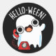 Hello-ween Funny Ghost Pun Dark BG Classic Round Sticker