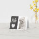 Greeting cards are a great way to show appreciation, or to let friends and family know how special they are when sometimes the words go unspoken. This cute notecard features a happy white Maltese puppy dog standing on a crisp white background.  A Hello greeting and a heart is highlighed against a black chalkboard background.