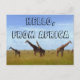 Introducing the "Hello with Love From Africa Hakuna Matata Postcard." This stunning postcard captures the essence of Africa's beauty, featuring the tallest giraffes roaming the expansive savannah lands under beautiful blue skies adorned with wonderful clouds on the horizon. The cool text "Hello with Love From Africa Hakuna Matata" adds a heartfelt touch to this picturesque scene.