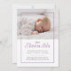 Introduce your new sweet baby to friends and family with this two-photo birth announcement. "Hello world" on the front with customisable space for text on the back. White with purple accents.