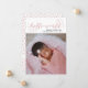 This stylish and elegant photo birth announcement card features four a photo of your newborn baby boy, custom text that can be personalised, hand drawn pink dots, and a text that says "hello world" in elegant script font. Customise this product by adding your newborn baby's name, picture, birth stats, and the parents' names. Modern and simple design.