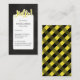 Business card in yellow, black and white with hello written in a fun script, and a back in yellow and black plaid.