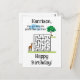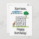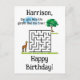 Cute and fun maze puzzle of a giraffe that needs help to find the tree is printed on custom postcards. The child's name is at the top, with the question, Can you help the giraffe find the tree? The maze is pictured with a blue cloud overhead, a tree in multi shades of green, and a giraffe standing in the green grass. Happy Birthday is written under the puzzle. All of the text can be easily customised. Young children will like the extra thought and activity that they can do for their birthday. Thank you for shopping MazePuzzles on Zazzle.