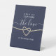Elegant, minimalist, simple navy blue wedding Help Us Capture The Love tabletop sign with faux gold rope heart and modern calligraphy script.