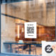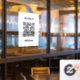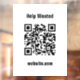A line of display text is at the top. You can edit the text to show a custom message. (Shown: Help Wanted) A QR code is in the center. (Remember to enter your website URL for the QR code to work correctly.) Another line of display text is at the bottom. You can edit the text to show your website or a custom message.