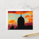 Helsinki Cathedral (Helsingin tuomiokirkko) at dusk. Red clouds on background. Postcard.