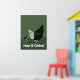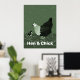 Mother hen and chick in green for a monochromatic kitchen wall art poster with hen and chick caption. The digital artwork is perfect for hanging on a kitchen wall. How to customize the template? Choose the background color to match the hue to an existing color scheme. Mid-range tones work best and return the chosen color lightened up with white or darkened down with black. Personalize the caption text, the font, and the font color. For help or custom designs, please contact https://t.me/KBMD3signs_chat.
