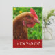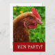 Fully customizeable invitation for a girl's night bachelorette party, often referred to as a "Hen Party" Invite all the chicks out to celebrate with this cute hen! Features a rural country feel close up portrait style photograph of a young red chicken laying hen.