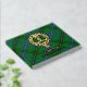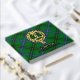 Clan Henderson crest badge surrounded by a strap and buckle over tartan background. Custom front, back and spine text.