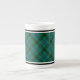 Bone china mug with the Henderson family clan tartan pattern. Traditional vintage Scottish plaid from 1762 in bright green and blue, with black, white, and yellow accents.