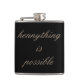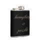 The flask itself is fine. It’s a cheap flask, obviously bought in bulk, however am prepared to overlook that. Given that it is a personalized item, I would have liked to have seen gift boxing instead of the generic packaging. Terrible printing, and/or quality. It’s a cheap, tacky vinyl. It is not cut straight and is also applied in a way that it is overhanging the bottom, causing the glue to catch on items and it will eventually roll and tear, damaging the wrap.