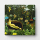 Henri Rousseau The Dream plaque. Oil painting on canvas from 1910. Henri Rousseau’s most famous jungle painting, The Dream is a vibrant work depicting Rousseau’s teanage love Yadwigha lying on a divan in the middle of the jungle surrounded by large blue and red lotus flowers. A snake charmer plays a reed flute, and monkeys, birds, lions, snakes and elephants calmly respond to his tune. Fruit hangs in the branches of the dark green trees above. A beautiful gift for fans of Henri Rousseau, the jungle paintings, post-impressionism, and French art.