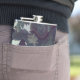 The flask itself is fine. It’s a cheap flask, obviously bought in bulk, however am prepared to overlook that. Given that it is a personalized item, I would have liked to have seen gift boxing instead of the generic packaging. Terrible printing, and/or quality. It’s a cheap, tacky vinyl. It is not cut straight and is also applied in a way that it is overhanging the bottom, causing the glue to catch on items and it will eventually roll and tear, damaging the wrap.