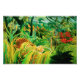 Henri Rousseau Tiger in a Tropical Storm print. Oil painting on canvas from 1891. One of the great works of post-impressionism and one of Henri Rousseau’s most famous paintings, Tiger in a Tropical Storm depicts a surprised tiger challenged by the fierce wind and rain of the jungle. The work is renowned for it’s charming yet intricate use of multicolored fauna. Bright yellows,dark greens, wild reds, and soft blues make this a chromatically dynamic work, and the tiger itself is stunningly imagined. A beautiful gift for fans of Henri Rousseau, post-impressionism, tiger paintings, and French art.