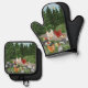Bring holiday charm to your kitchen with this festive oven mitt and potholder set. The design showcases three playful hens and their brood of fluffy chicks nestled among a serene winter scene featuring a Christmas tree and other evergreen trees lightly dusted with snow. Snowflakes drift gently across the backdrop, creating a whimsical and cosy ambiance. Set against a light blue background that exudes seasonal warmth, this set is perfect for handling hot dishes and trays during your holiday cooking and baking. With its charming design and practical use, it’s an excellent way to add seasonal cheer to your kitchen essentials.We kindly ask that you remember these items are intended for personal use only. Please respect the creativity and effort that goes into each design by not reproducing, reselling, or redistributing them. Your understanding and cooperation help us continue to bring you unique and inspiring designs. Thank you!