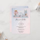 Celebrate the joy of your baby reveal with this enchanting and unique invitation design! Featuring a soft, blended blue and pink background, this invitation captures the essence of anticipation and excitement. At the center, two adorable mannequins display a baby girl’s dress and a baby boy’s overalls, symbolizing the sweet mystery of "her or him." Each outfit is complemented by a cuddly teddy bear adorned with a matching bow—pink for her and blue for him—adding a touch of charm and warmth.