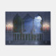 "Standing on a candlelit balcony at night, looking out on red roses and a willow tree growing on the grassy bank of a lake. The bright rays of the silver moon stream through the window arches.