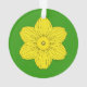 The daffodil in the Glyndŵr civic arms was one of the inspirations for this heraldic-style daffodil design by Richard H. Fay. The daffodil has come to symbolise Wales and has been adopted as the national flower of Wales.