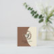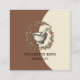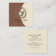 An illustrated herbalist business card with mortar pestle and leafy vines, on a two toned cream and cocoa brown background, with a unique square card. Simple elegant serif typography.